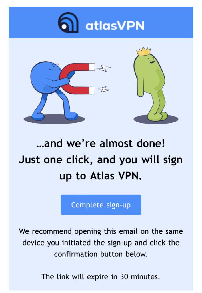 3、メールアドレスに送られてきた「Complete sign-up」をクリック