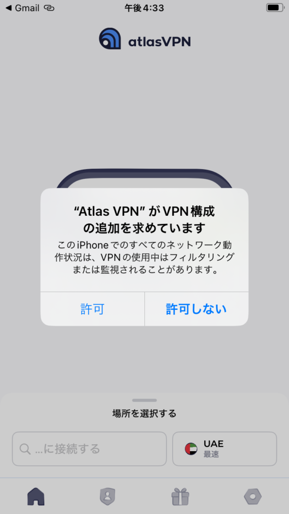 AtlasVPNの初期設定方法(iPhone版での画像付き)