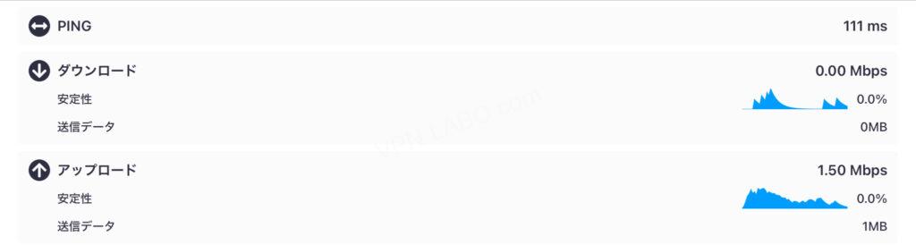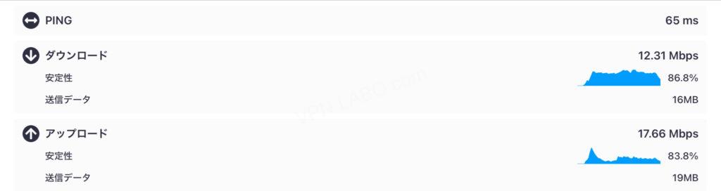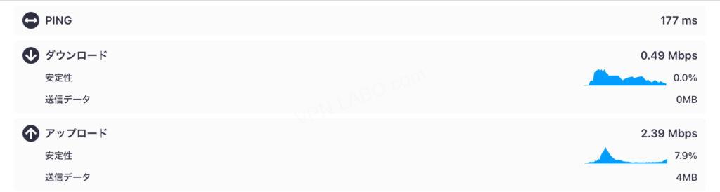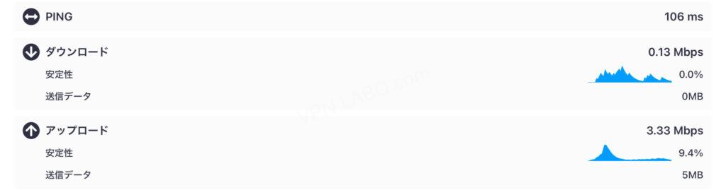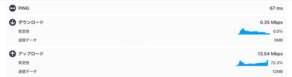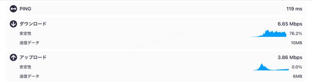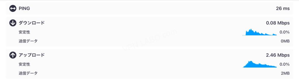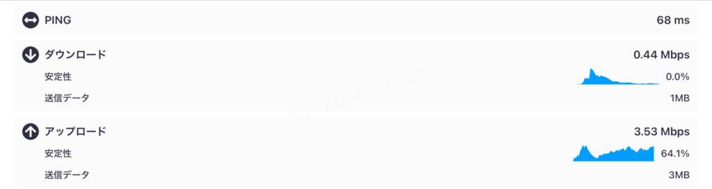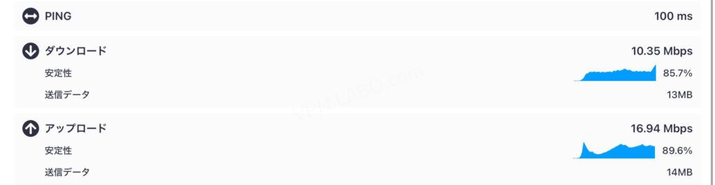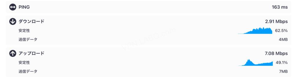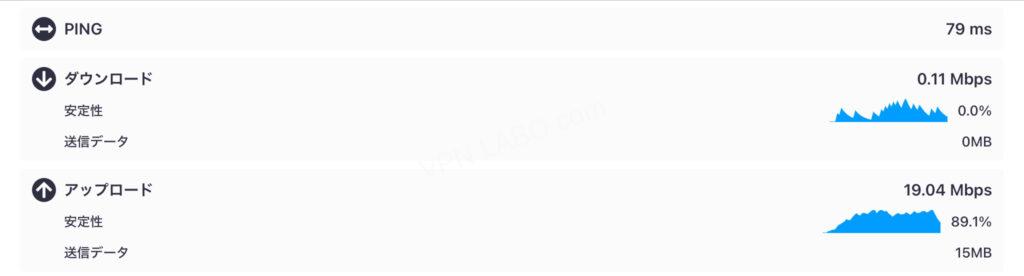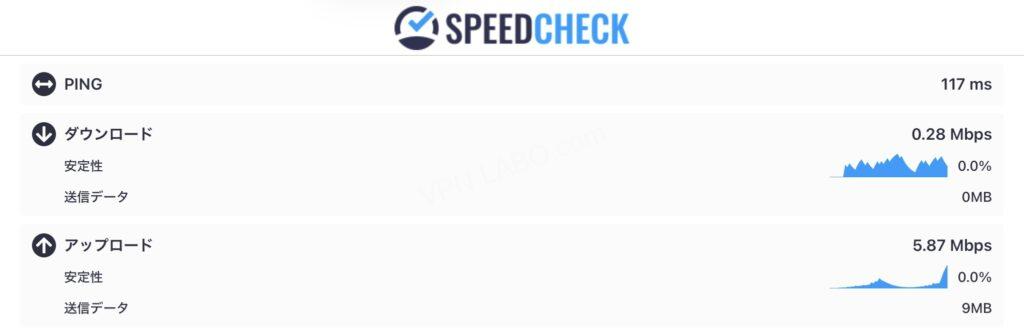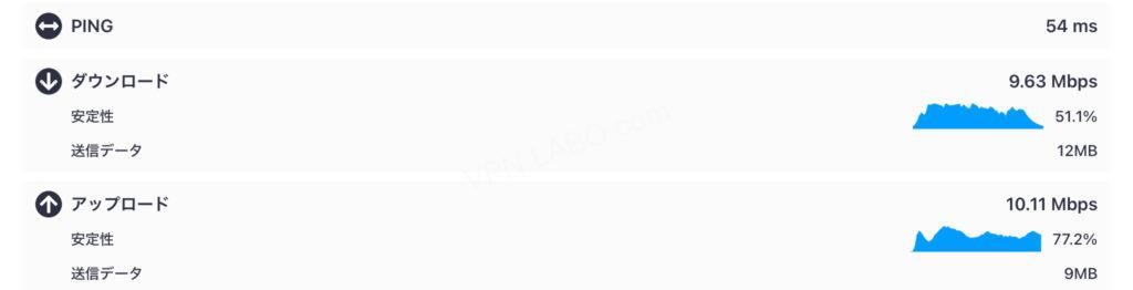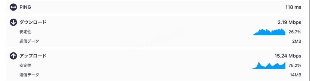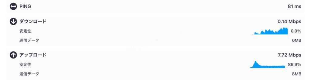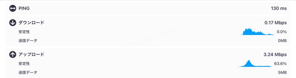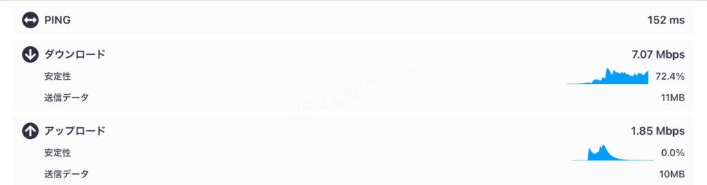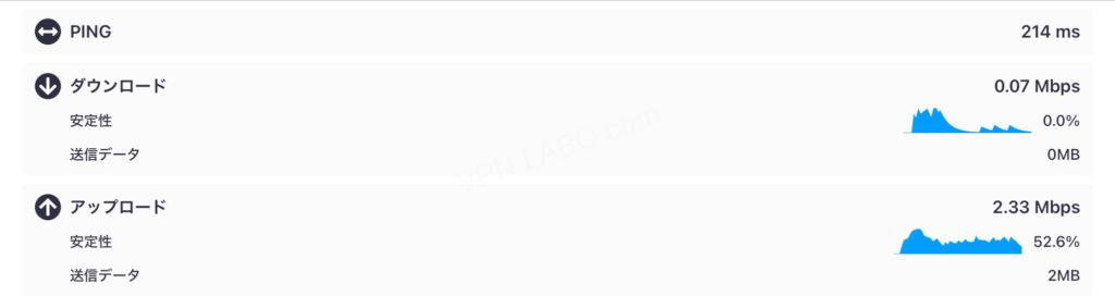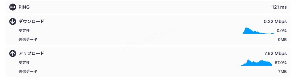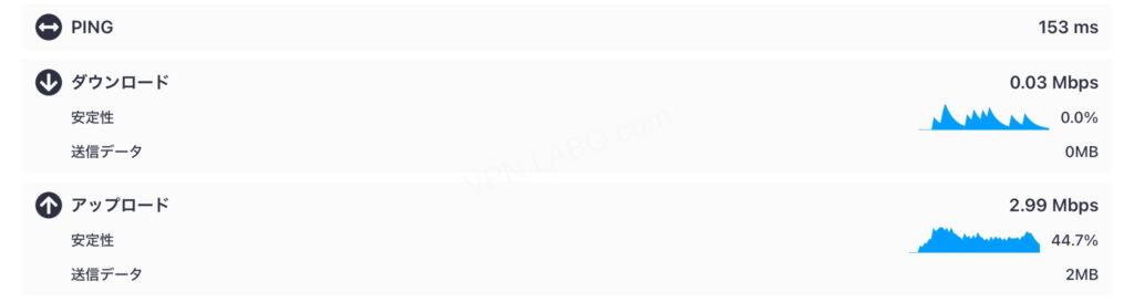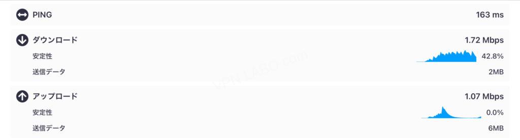 計測地はバングラデシュのダッカ。VPNなしでの接続状況はこんな感じ。速くはないですね。