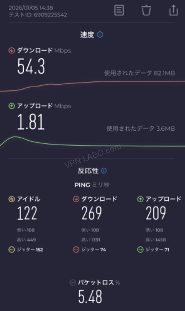 チョモランマVPN速度テスト(iPhone+5Gsim)