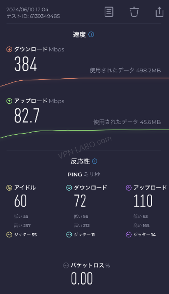 Looking at the above results, the PING and DOWNLOAD values are good, so it is a comfortable environment.