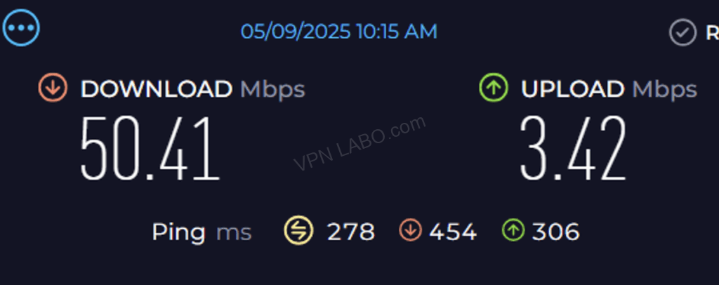 ネットの速さはここに表示されている「PING」と「DOWNLOAD」と「UPLOAD」の値で判断します。 「PING」の値は低ければ低いほど良く、「DOWNLOAD」と「UPLOAD」の値は大きければ大きいほどネットが早いことを意味します。 大体の目安としては「「PING」約200ms以下 「DOWNLOAD」「UPLOAD」ともに3Mbps以上」あれば、ネット閲覧、YouTubeなどの動画閲覧も比較的快適です。   上の結果を見るとPING値もDOWNLOADの値も良いので快適な環境だと言えますね。 でも実際には、このテスト結果の数字はあくまでも目安にしかならないので、実際に使ったときの感想をサーバー名の横の()の中に簡単に書いてあります。   (ネット閲覧:速い YouTube:1080P快適)ってやつです。 これはYahoo!を含むネット閲覧とYouTubeのどの解像度の動画が快適に見れたかを示しています。 1080P はHD動画ですので、これが快適に見れるというのは、十分速度が出ているということになります。 もし「PING」「ms」「Mbps」ってなに?と思われた方は、こちらの記事でさらに詳しく説明していますのでご覧ください。 【保存版】VPN速度テストの見方!PING・ms・Mbpsって何?
