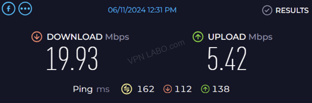 ExpressVPN:中国での速度テスト(Windows+Wi-Fi)