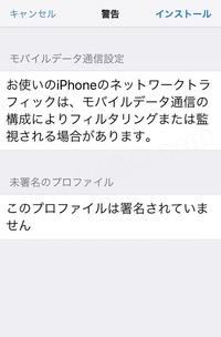 『お使いのiPhoneのネットワークトラフィックは、モバイルデータ通信の構成によりフィルタリングまたは監視される場合があります。』
