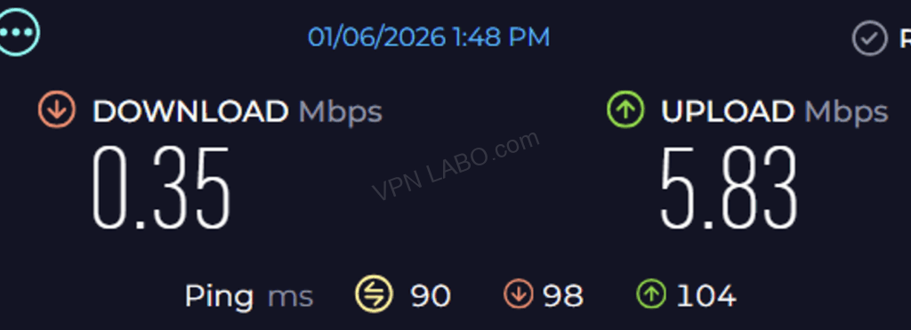 MillenVPNを中国国内で速度テストした結果をご覧いただきました。