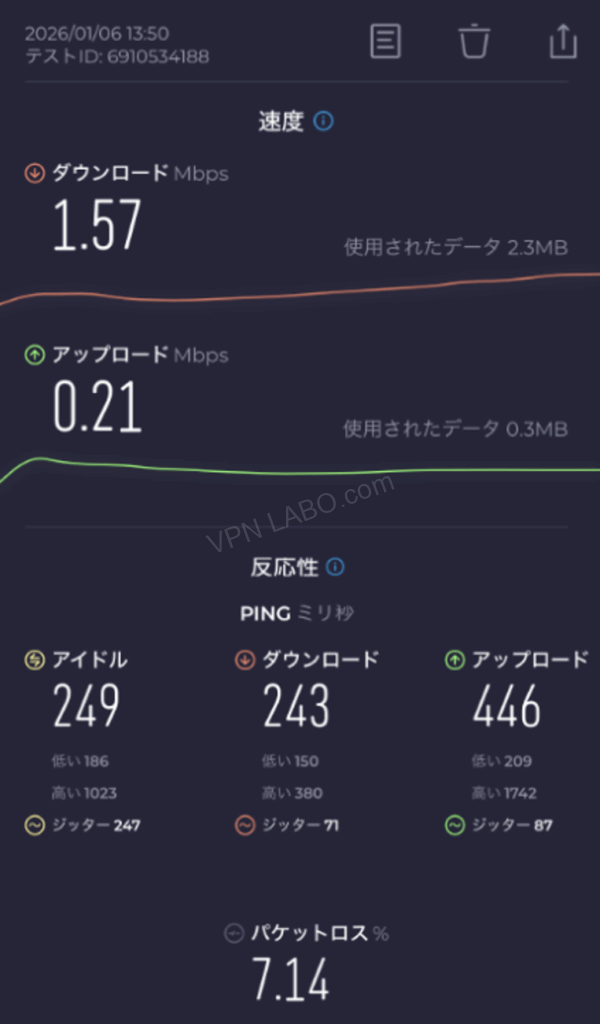MillenVPN過去テスト記録 スマホ版+4Gsim