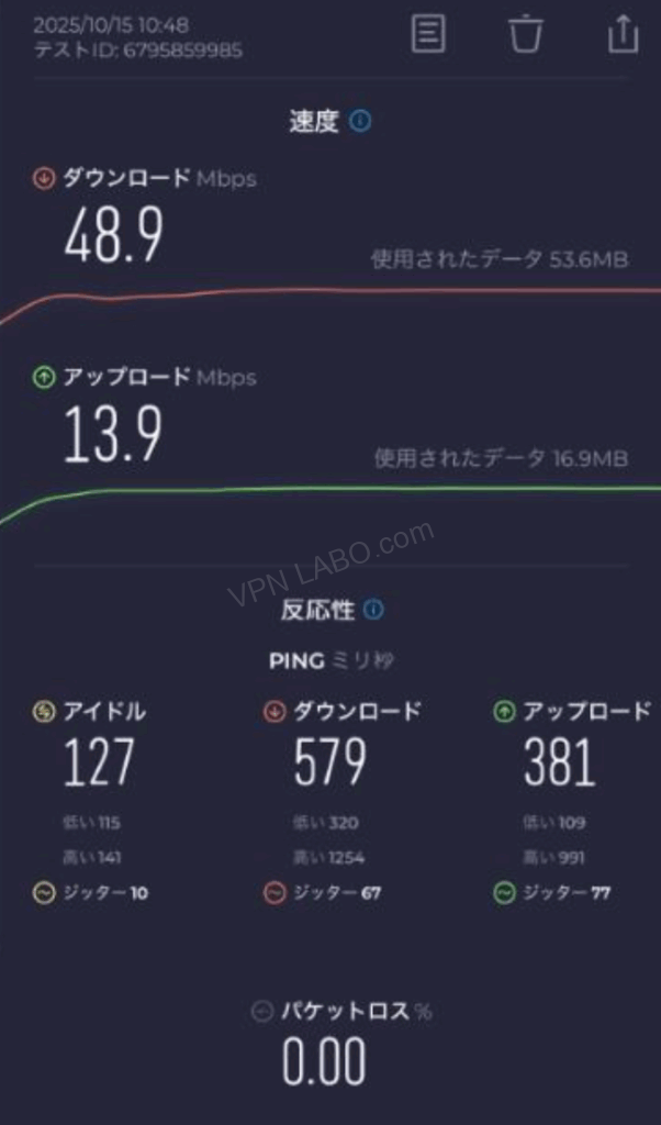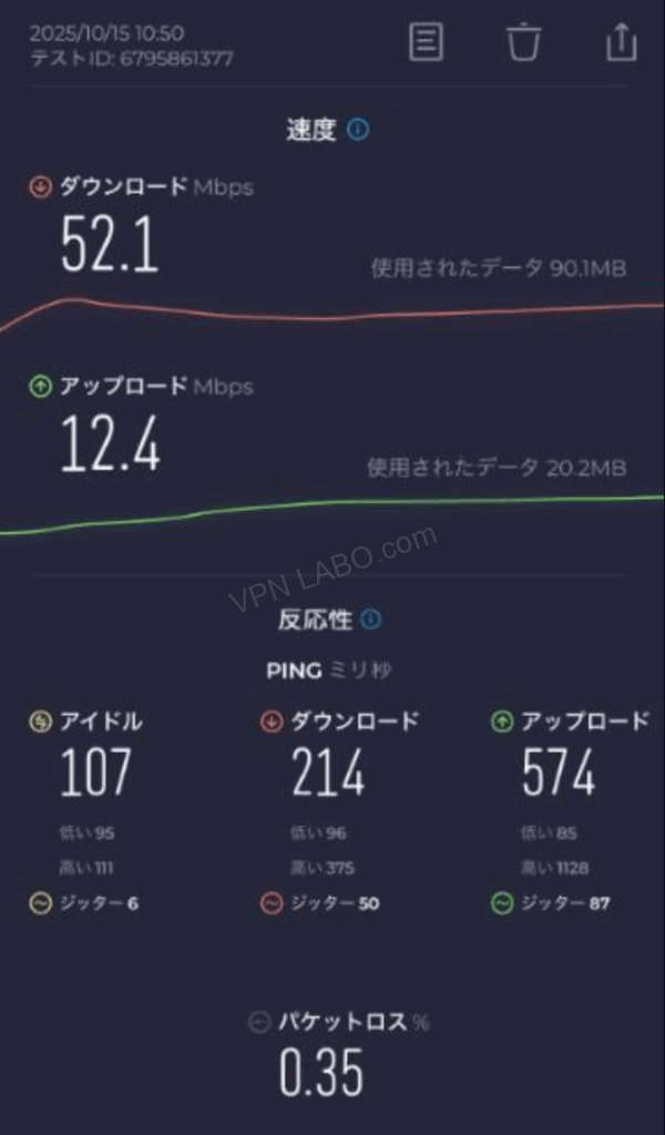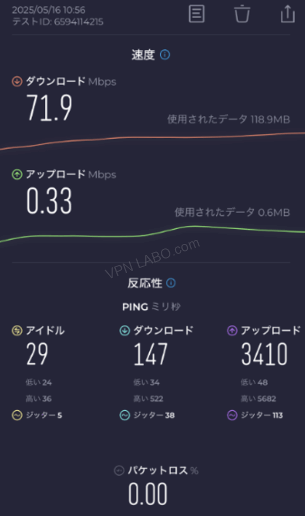 良之助VPN速度テスト過去記録(iPhone版+4Gsim)