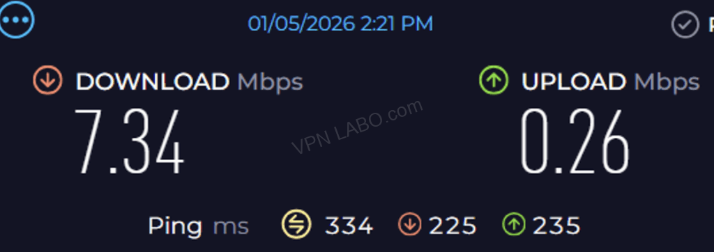 ・2024年1月8日:◯ 快適 IKEv2-1 (ネット閲覧:速い YouTube動画:720P快適)