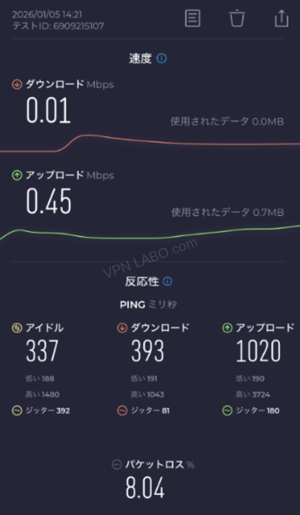 スイカVPN速度テスト過去記録(スマホ+4Gsim)