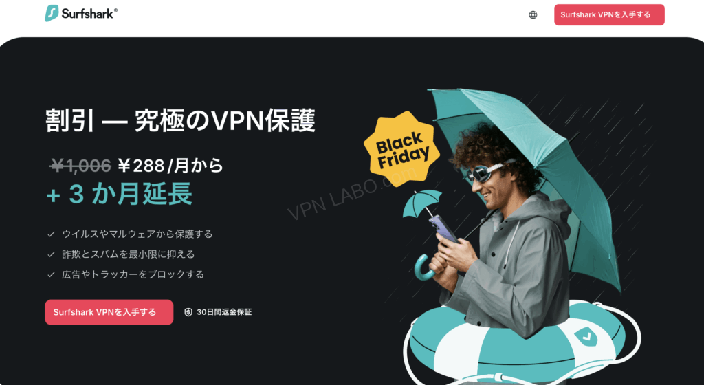 | 安全性 | 運営会社:Surfshark(会社所在地はオランダ)