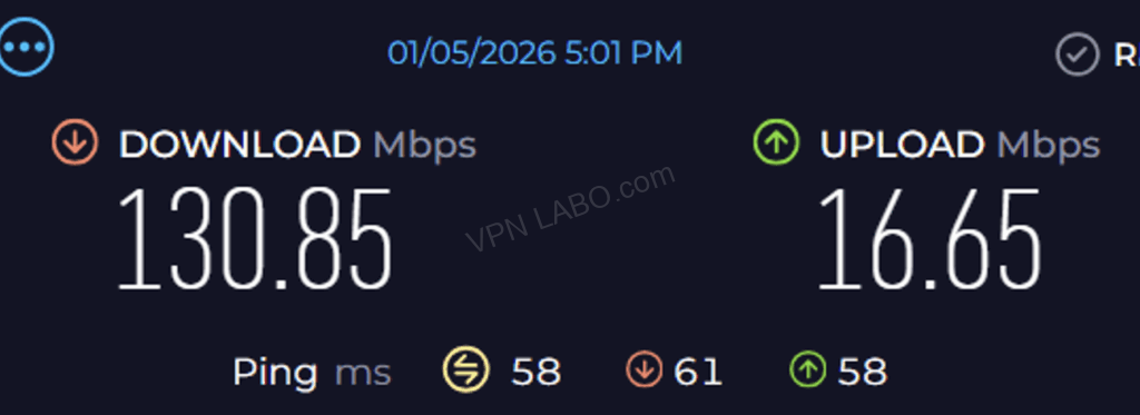 VPNをつないでいるのがわからないくらい。むしろそれより速いです。